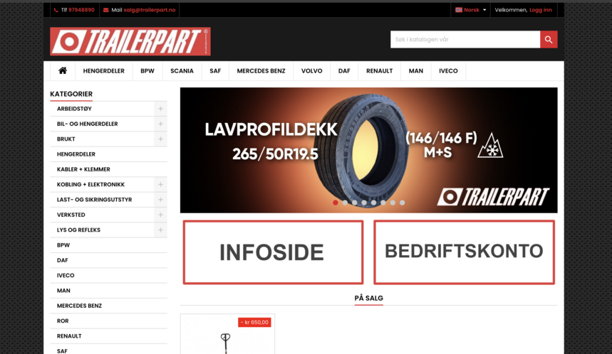Alle bedrifter er velkommen til å opprette en konto hos trailerpart.no for å
